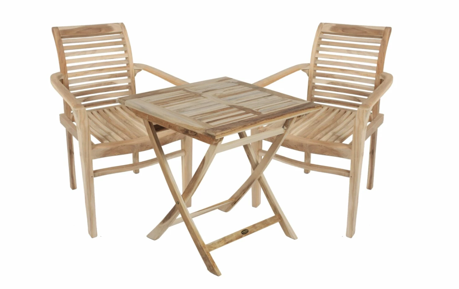 3-teilige Tischgruppe JAVA 08 – natur – Teak Massivholz – stapelbar