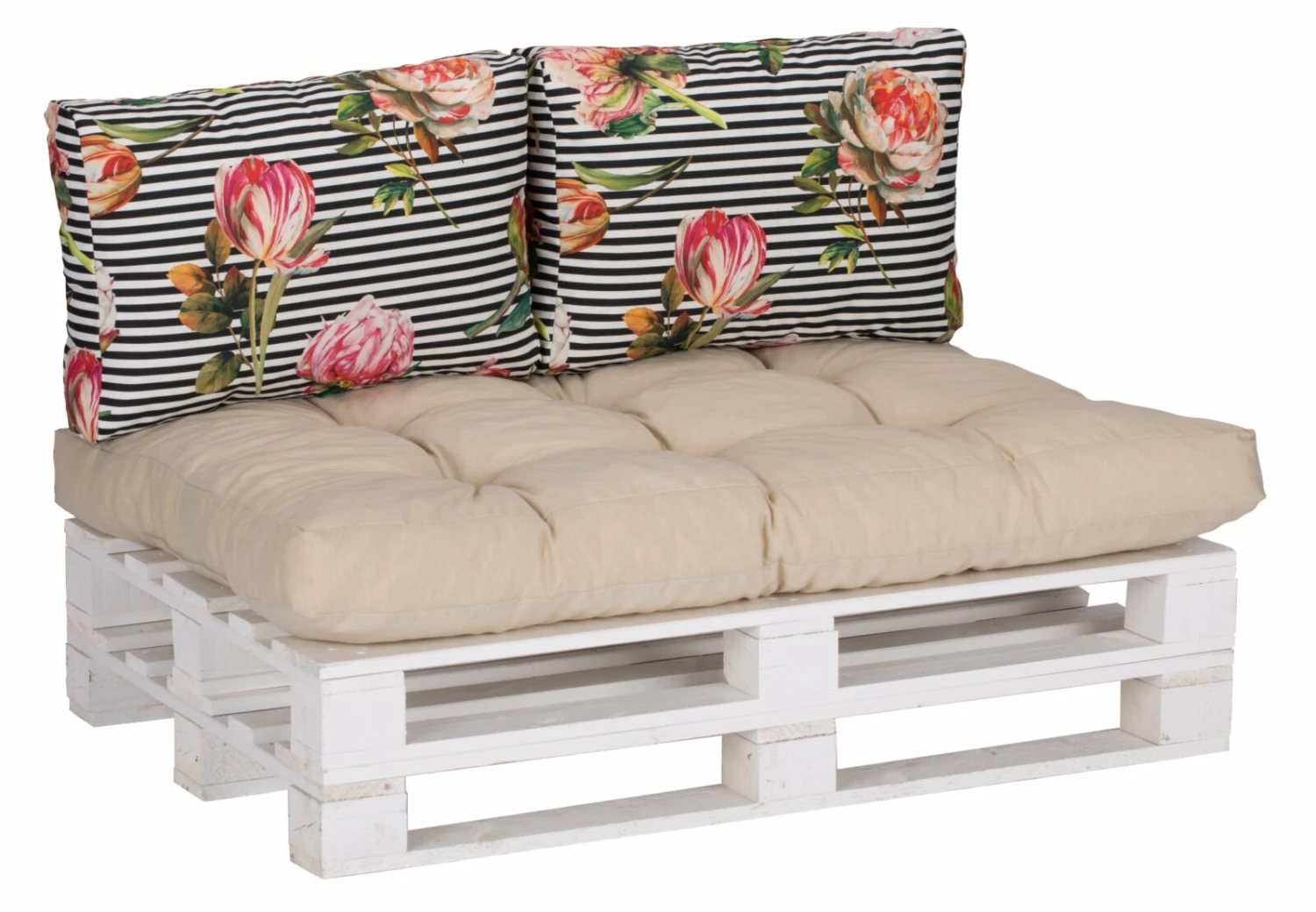 3-teiliges Paletten-Kissen-Set – beige – Rosen auf Streifen