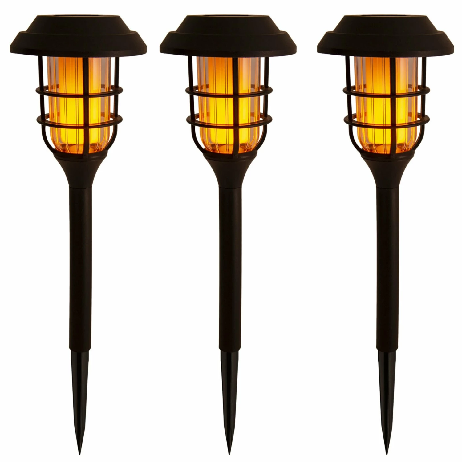 3er-Set Solar-LED-Erdspieß – schwarz – 34 cm hoch