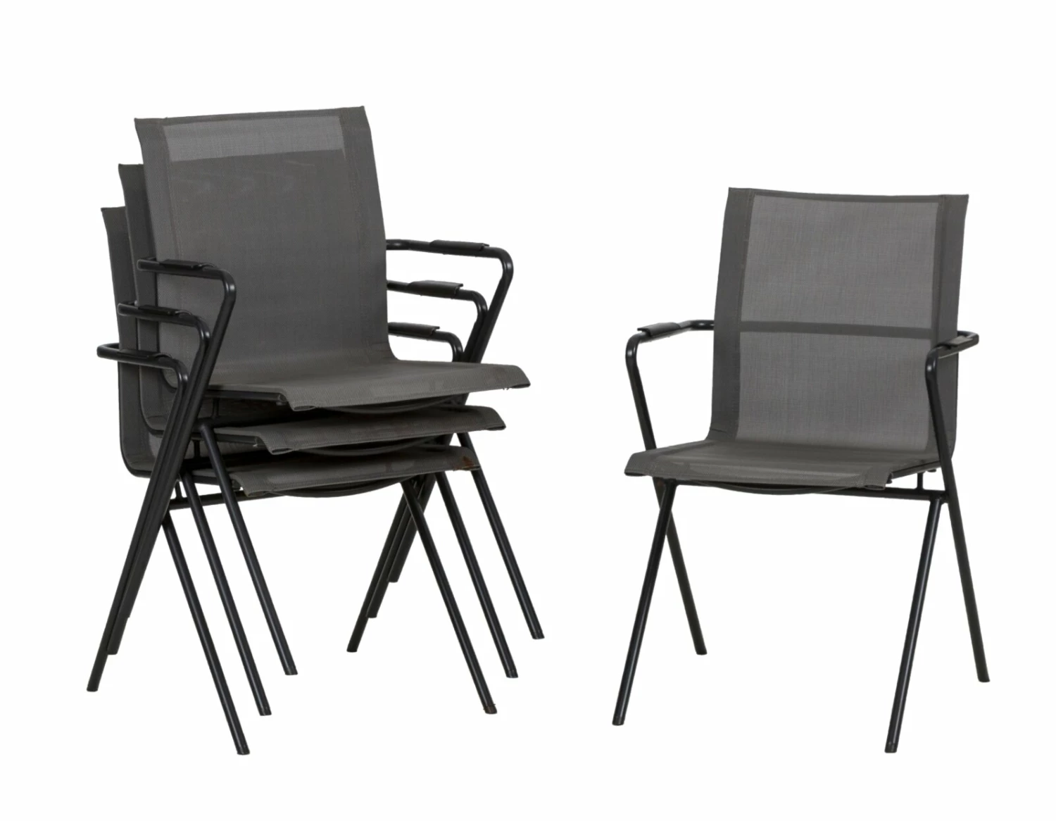 Dieses 4-teilige Stapelstuhl-Set in Anthrazit verbindet Design mit Praktikabilität. So können diese problemlos und platzsparend aufgestapelt werden. Durch das Acatex-Gewebe sind die Stühle besonders atmungsaktiv und wetterfest. Daher eignen sie sich perfekt für den Außenbereich.