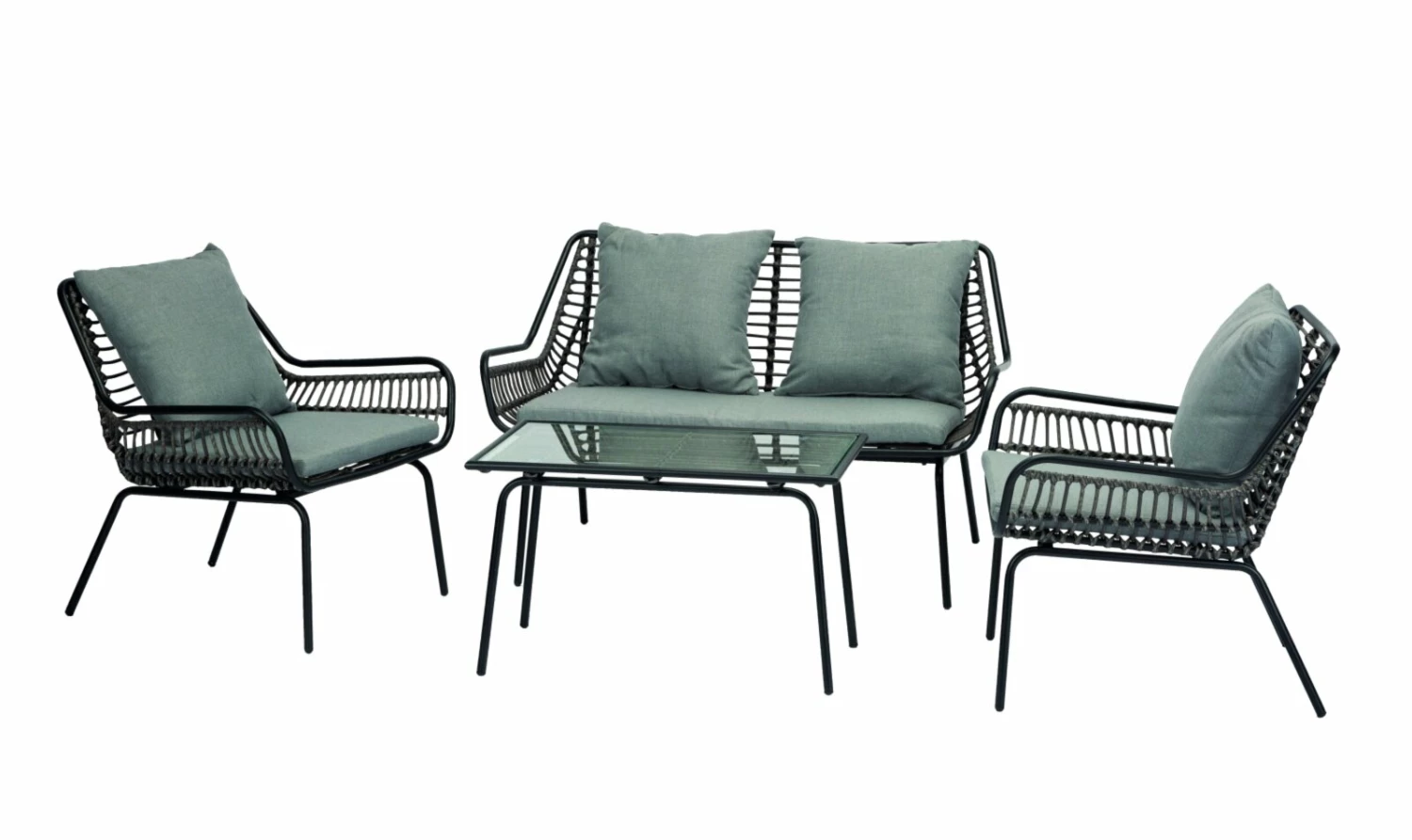Das attraktive vierteilige Garten-Loungeset ist Ihre gemütliche Entspannungs-Oase für die Terrasse oder den Garten. Entspannen Sie beispielsweise auf dem 117 cm breiten Sofa, das mit einer bequemen und wasserabweisenden Polsterung ausgestattet ist. Der Tisch mit seiner Platte aus Sicherheitsglas ist ein optisches Highlight. Alle verwendeten Materialien wurden so gewählt, dass sie sich sehr gut für den Außenbereich eignen: Das Gestell ist elektrolytisch beschichtet und verfügt so über einen guten Rostschutz. Die Rückseiten des Sofas sowie der Stühle sind mit UV-beständigem und wetterfestem Polyrattan umwickelt.