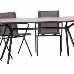 Ein tolles Design-Highlight für die Terrasse, den Garten oder Balkon. Bestandteil des Gartentischsets sind vier Stapelsessel, die einen hohen Sitzkomfort bieten, aber auch wetterfest sind. Gefertigt aus robustem Stahlrohr mit einer schönen anthraziten Pulverbeschichtung sind die Stühle dank eines elektrolytischen Beschichtungsverfahren gut vor Rost geschützt. Abgerundet wird die Tischgruppe vom 160 x 80 cm großen Gartentisch, der eine edle Sicherheitsglastischplatte hat. Ob Sie ihn als Esstisch für draußen, als Outoor-Büro oder für die Gartenparty verwenden, der Tisch ist ein Hingucker und ist die ideale Ergänzung für die Stapelstühle.