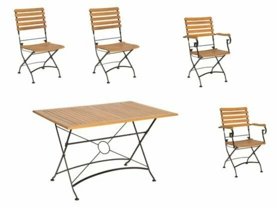 5-teilige Tischgruppe – teakfarben – Akazie massiv