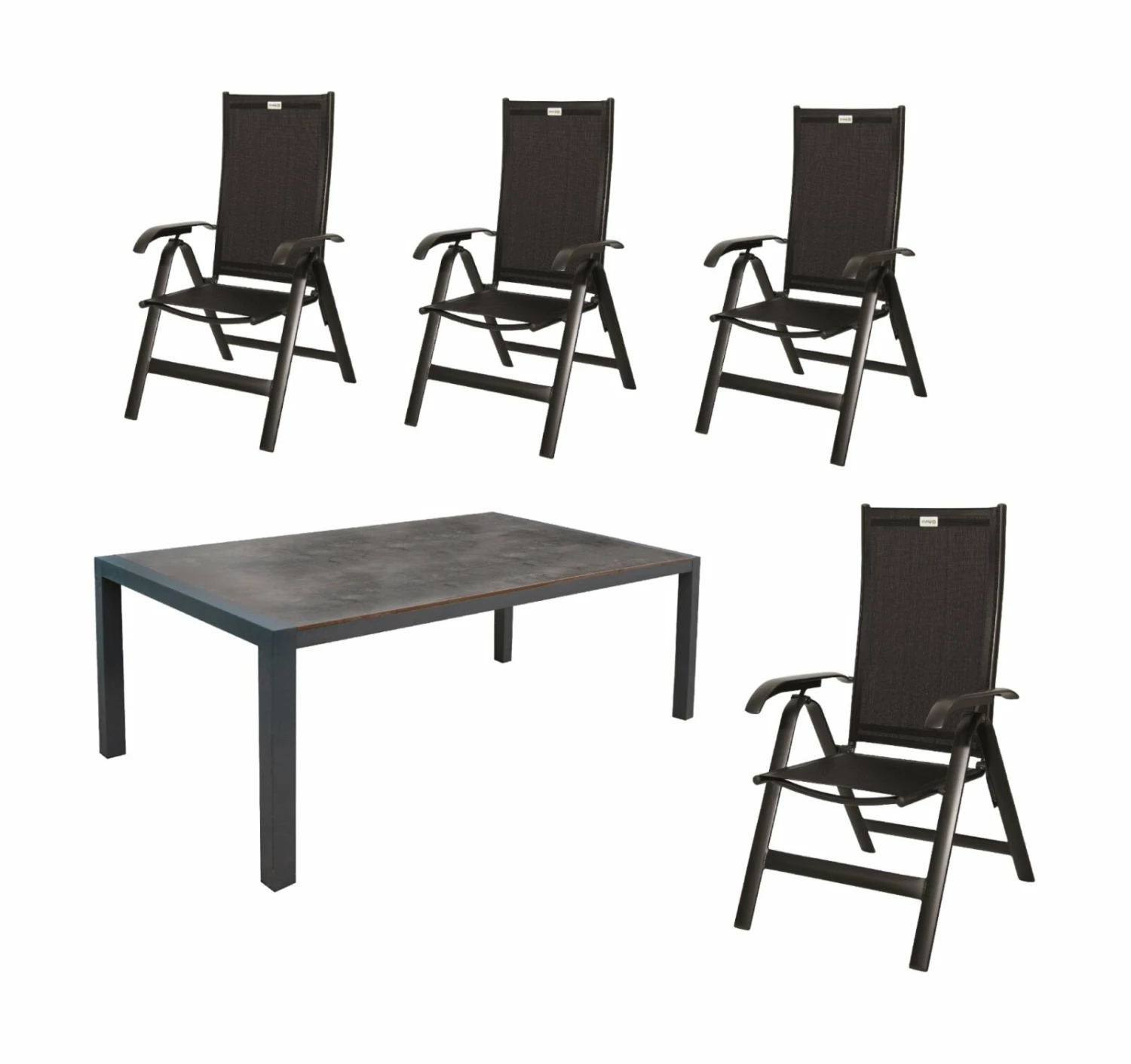 5-teiliges Gartenmöbel-Set – schwarz-anthrazit – klappbar – 180×98 cm