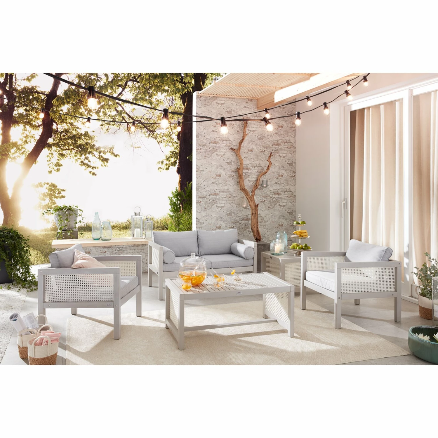 - Set bestehend aus Loungesofa, Loungetisch, 2 Sessel, Beistelltisch