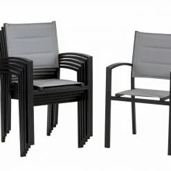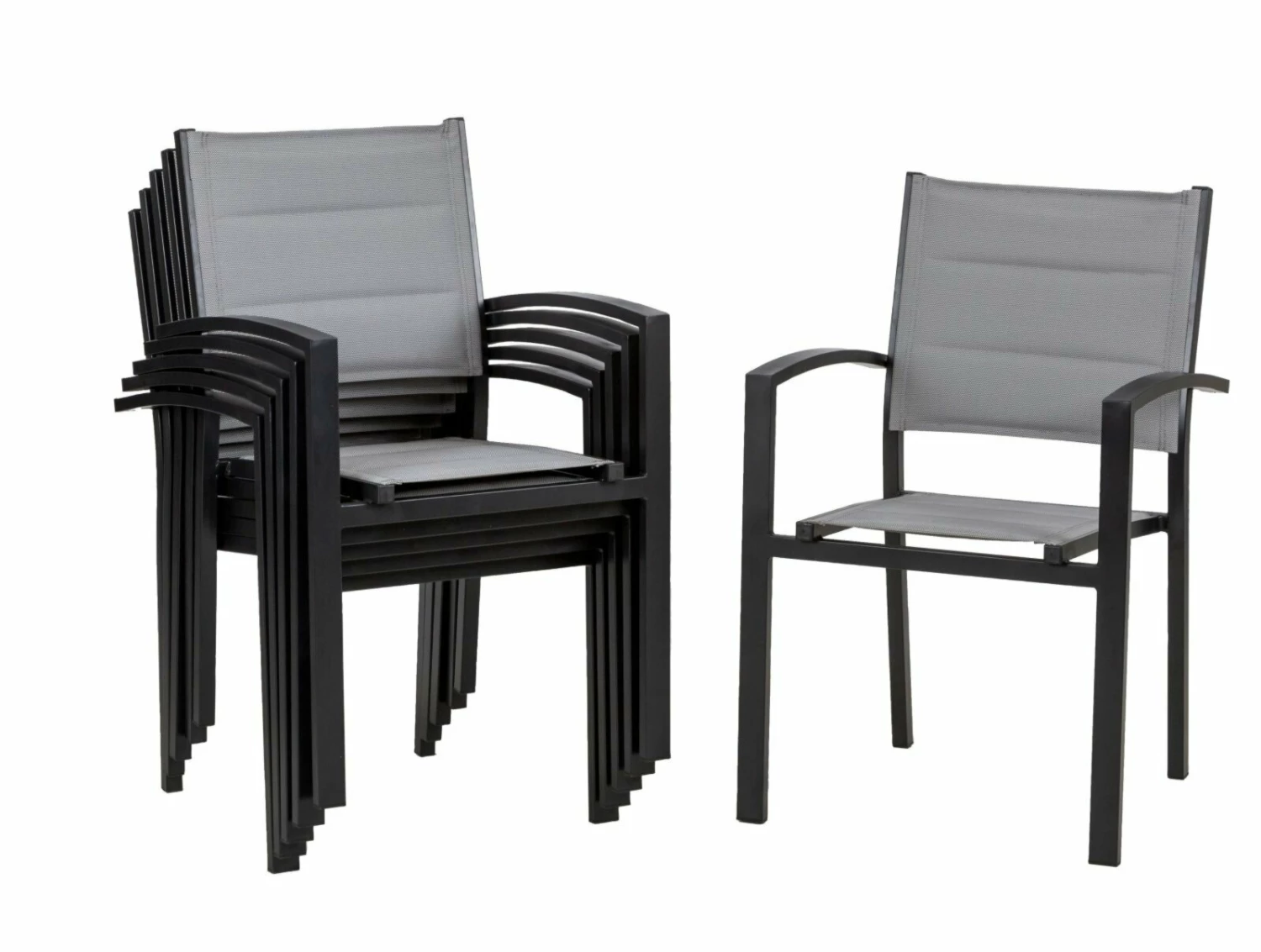 6-teiliges Stapelstuhl-Set – schwarz-silbergrau – gepolstert