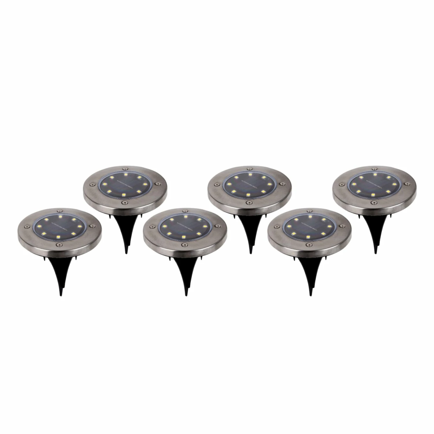 6er-Set LED-Solar-Erdspieße – stahlfarben-schwarz
