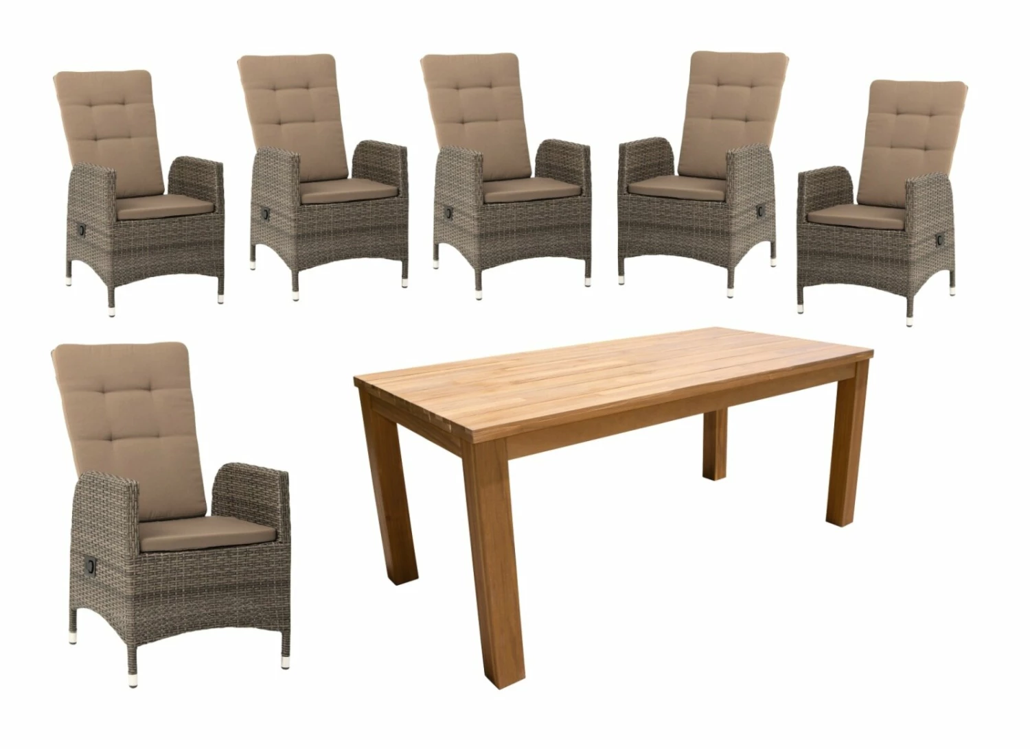 7-teiliges Gartenmöbel-Set – grau-taupe – Akazie massiv – 180×90 cm