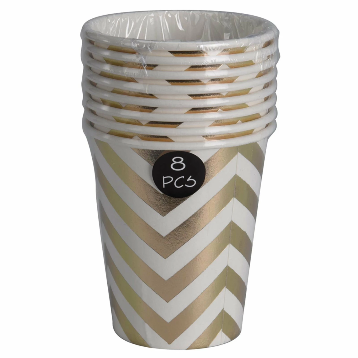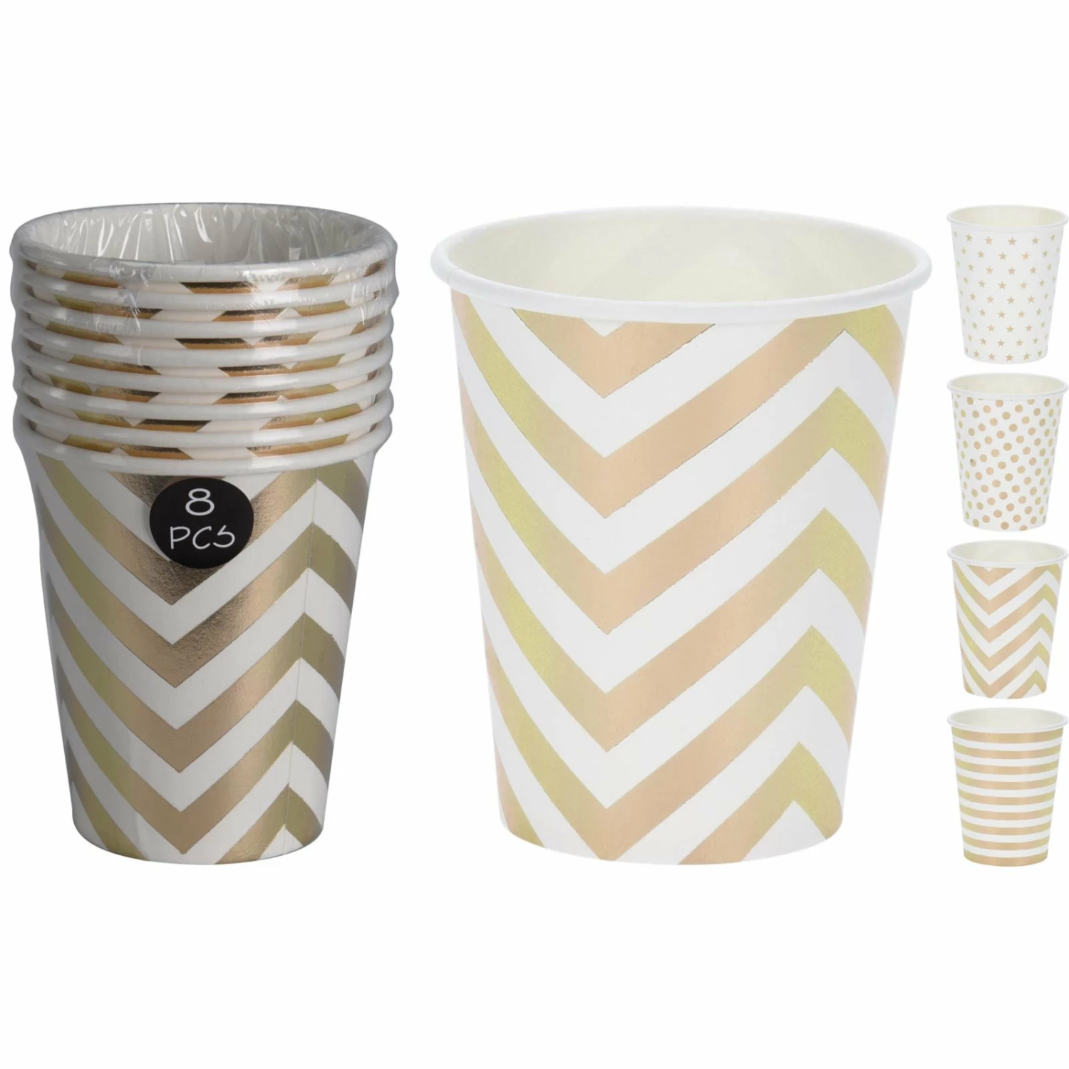 8er-Pack Pappbecher – gold-weiß – 250 ml