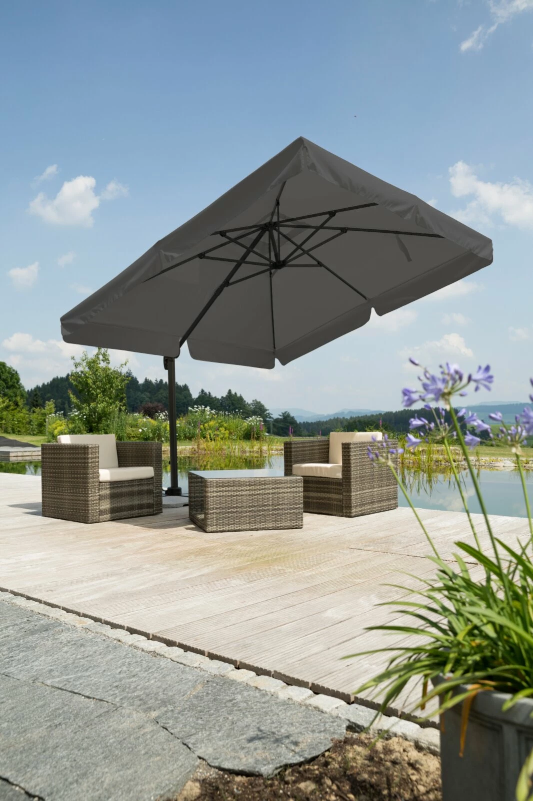 Ampelschirm RHODOS – anthrazit – rechteckig – 300×300 cm