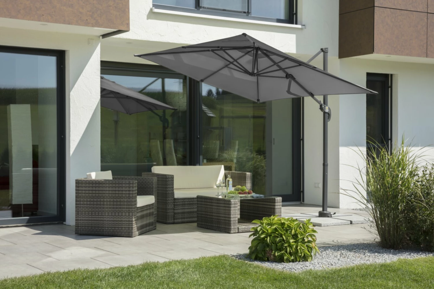 Ampelschirm RHODOS JUNIOR – anthrazit – quadratisch – 230×230 cm