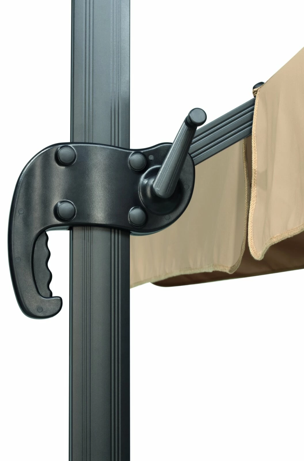 Der Ampelschirm RHODOS schützt Sie nicht nur optimal vor Sonneneinstrahlung, sondern sieht auch noch super aus und lässt sich einfach Bedienen. Optisch überzeugt der Ampelschirm durch seine großzügige Bespannung mit den Maßen von ca. 300 x 300 cm. Ein Highlight setzt hierbei das vorhandene Volant. Mit Hilfe der integrierten Kurbelmechanik lässt sich der quadratische Ampelschirm mit UV-Schutz 50+ leicht öffnen bzw. schließen. Per Fußpedal lässt sich der Schirm um 360 ° drehen, sodass Sie ihn immer schnellstmöglich der Sonnenstellung anpassen können. Zusätzlich ist der Ampelschirm stufenlos in verschiedene Neigungswinkel einstellbar. Merkmale für Langelebigkeit des Schirmes sind unter anderem die Pulverbeschichtung des Alu/Stahl-Gestells, die wasserabstoßende Imprägnierung und die in der Lieferung enthaltene Schutzhülle.