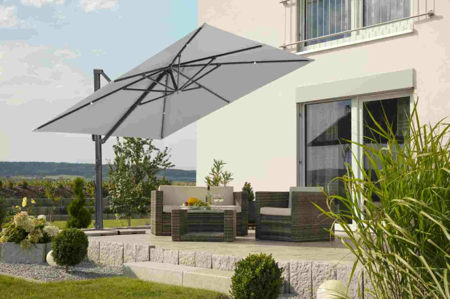 Ampelschirm RHODOS SMART – silbergrau – 300×300 cm