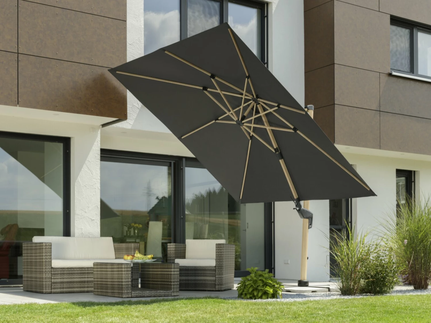Ampelschirm RHODOS TWIST WOODY – anthrazit – 300×300 cm