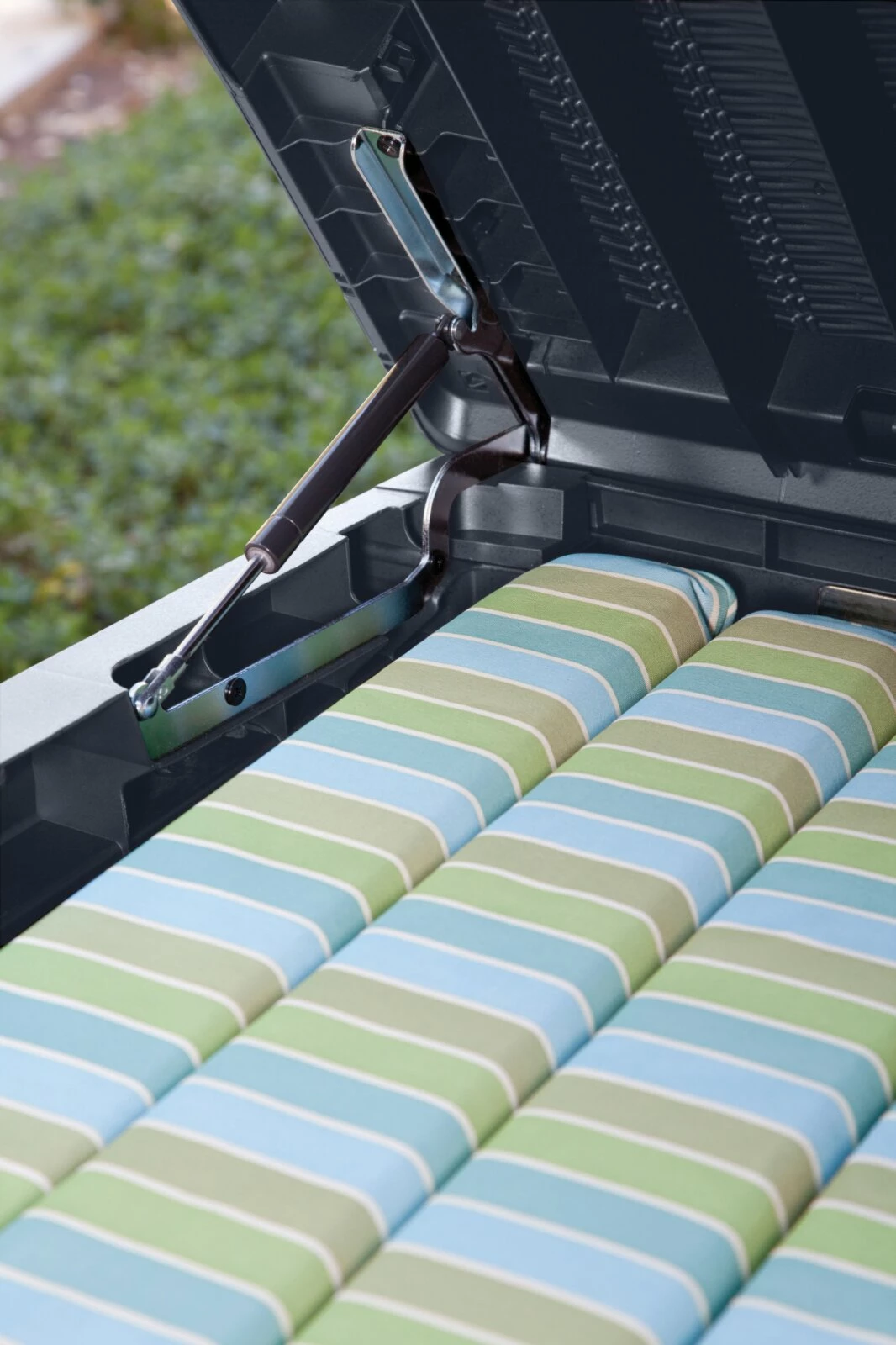 Diese Aufbewahrungsbox ist der neue Ordnungshüter für Ihren Garten und dabei noch zeitlos und edel gestaltet! Die universale Box kann ganz individuell eingesetzt werden, ob als Schutz für Ihre Gartenauflagen, als Verstauungsmöglichkeit für Ihre Gartenwerkzeuge oder als Ablage für Spielzeuge. Auch können hier Personen Platz nehmen, wenn zur spontanen Gartenparty zu wenig Stühle vorhanden sind. Das Fassungsvermögen liegt bei etwa 511 Liter, wobei das maximale Ladegewicht bei etwa 50 kg liegt. Die Maße belaufen sich auf ca. 145 x 64 x 73 cm. Ebenfalls lässt der Deckel sich durch Gasdruckfedern sehr leicht öffnen.