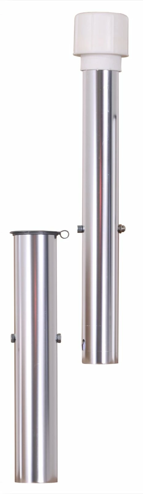 Diese Bodenhülse, für ein 50 mm Rohr ist zum Eingraben oder Einbetonieren geeignet. Besteht aus eloxiertem Aluminium und ist somit stabil und witterungsbeständig. Am Oberteil befindet sich ein Feststellring, der dem Schirm zusätzlich einen sicheren Halt gibt.