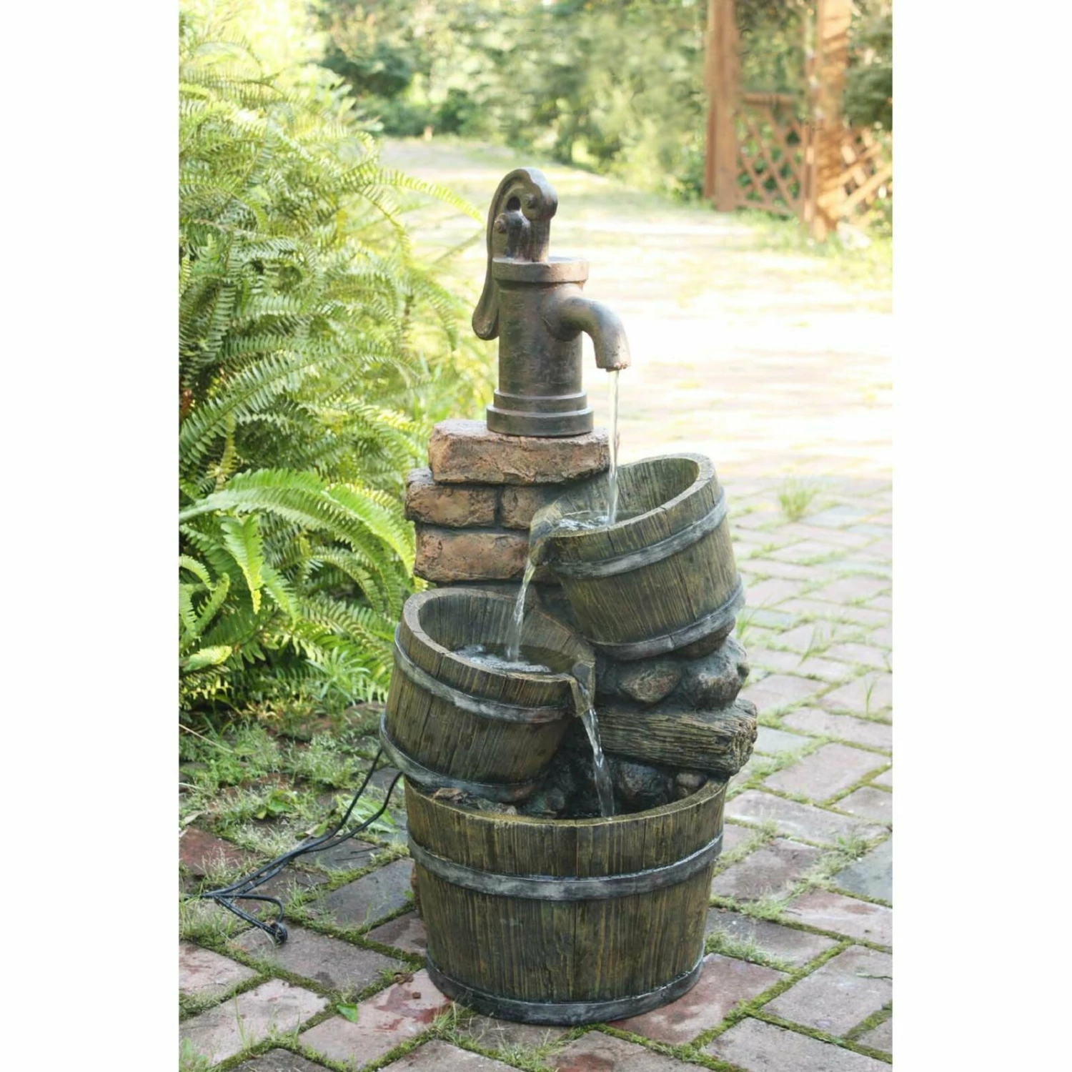 Der Brunnen VENETIEN in einem Mix aus Holz- und Steinoptik mit Kaskade ist eine beliebte Zierde für den Außenbereich sowie den Wintergarten. Der Brunnen ist aus wetterbeständigem Polyresin gefertigt und wird mit einer Elektropumpe ausgeliefert.