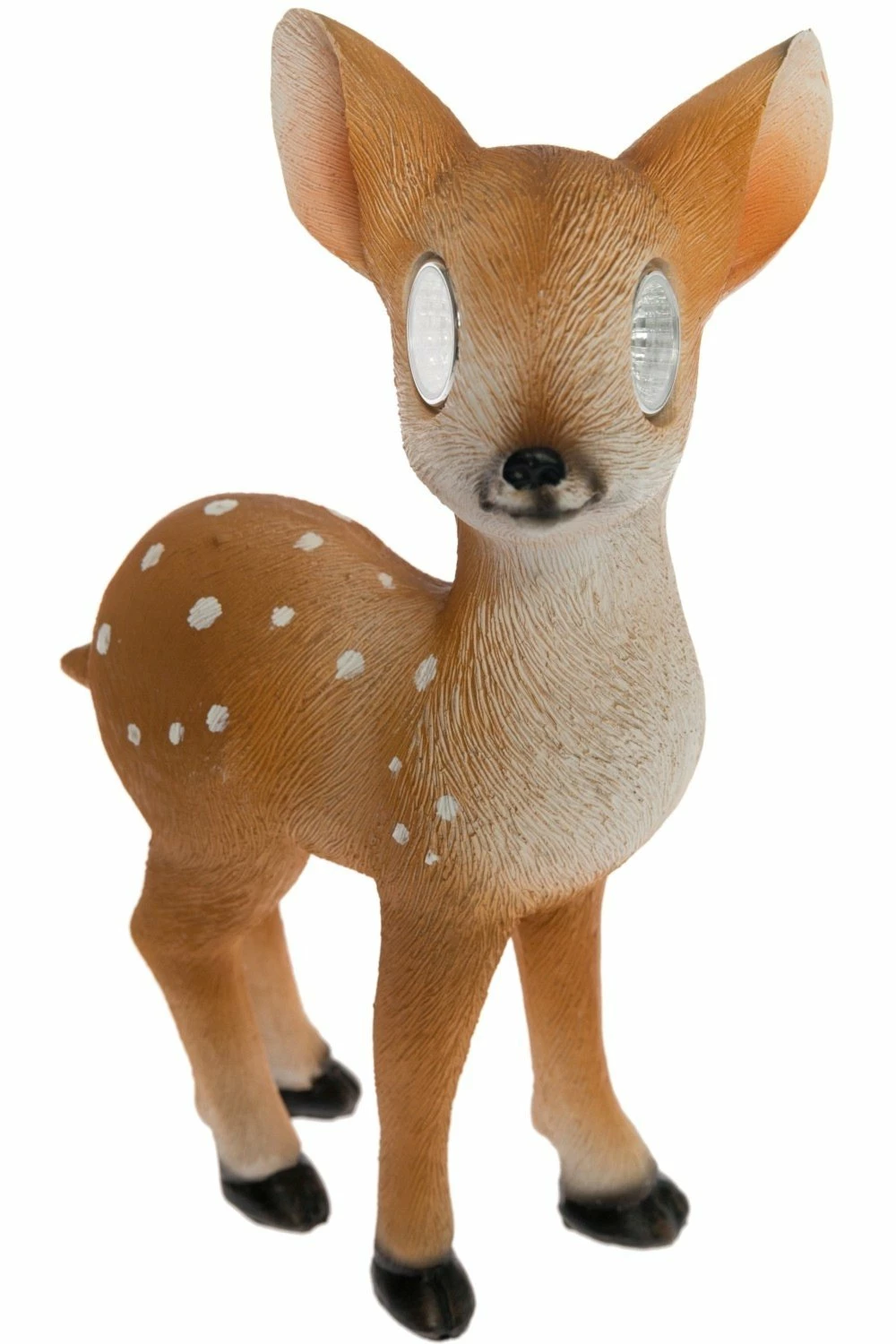 Das stehende Reh aus Steinharz und Kunststoff sieht super freundlich aus. Platzieren Sie es an einer sonnigen Stelle und warten auf die Dämmerung. Die Augen des Rehs fangen dank der Solarbeleuleuchtung an zu erstrahlen.