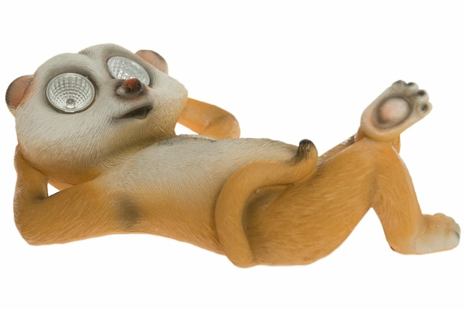 Was entspannt denn hier im Blumenbeet? Ein kleines Erdmännchen. Zufrieden und freundlich hat es die Beine überkreuzt und tankt den ganzen Tag die Sonnestrahlen. Wenn dann die Dämmerung einbricht, fangen die Augen des Erdmännchens an zu leuchten. Die Solarleuchte ist aus Steinharz und Kunststoff und aus tierfreundlichen Materialien.