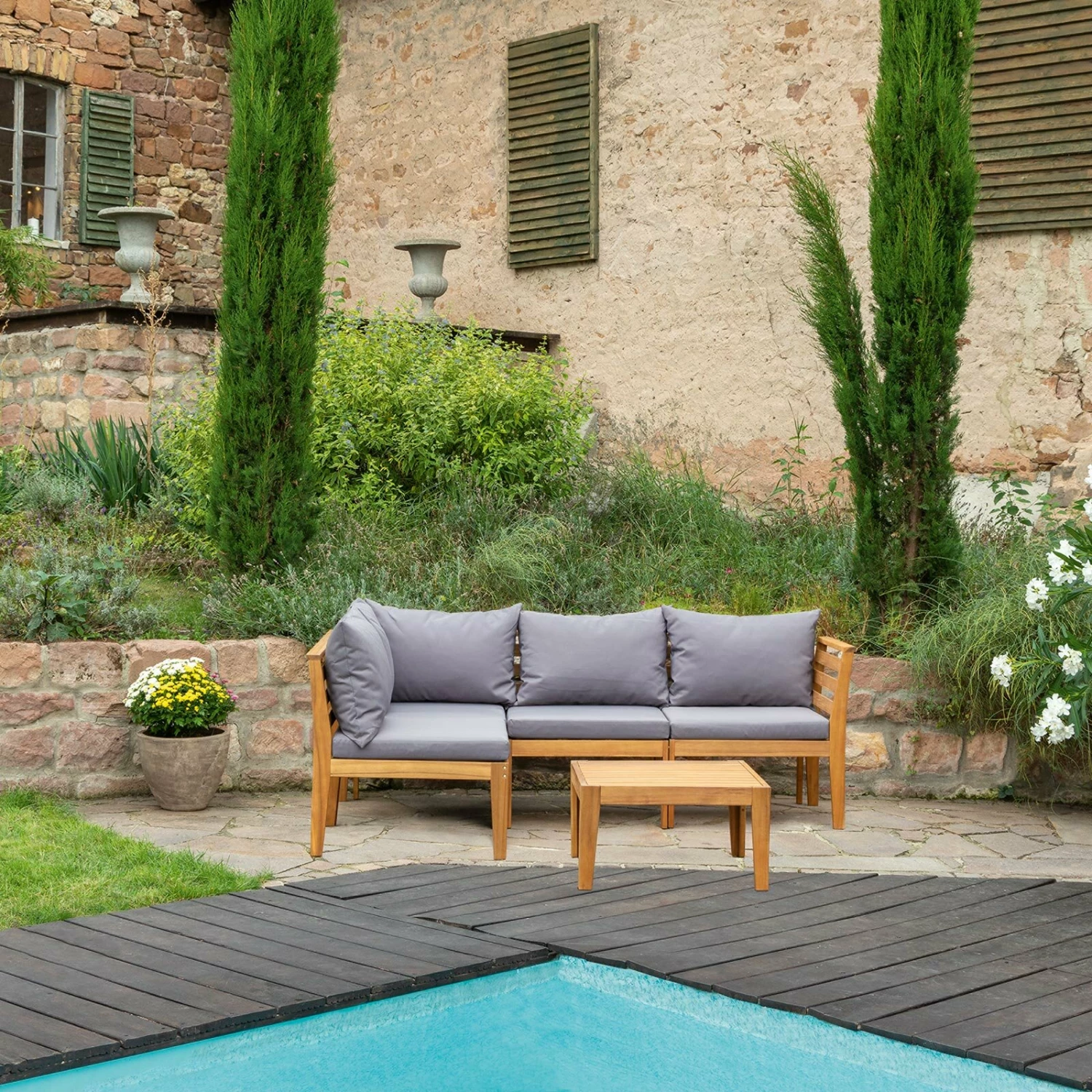 Mit diesem Garten-Loungeset stehen Ihnen diverse Aufstellmöglichkeiten zur Verfügung. Sie können diese Gartenmöbel über Eck stellen oder eine gemütliche Garnitur mit zwei Sessel und einem 2-Sitzer-Sofa zaubern. Dazu steht Ihnen stets ein praktischer Gartentisch zur Verfügung, auf denen Sie Ihre Drinks abstellen können. Egal für welche Möglichkeit Sie sich entscheiden, mit diesem Gartenmöbel-Set lässt es sich so richtig entspannen!