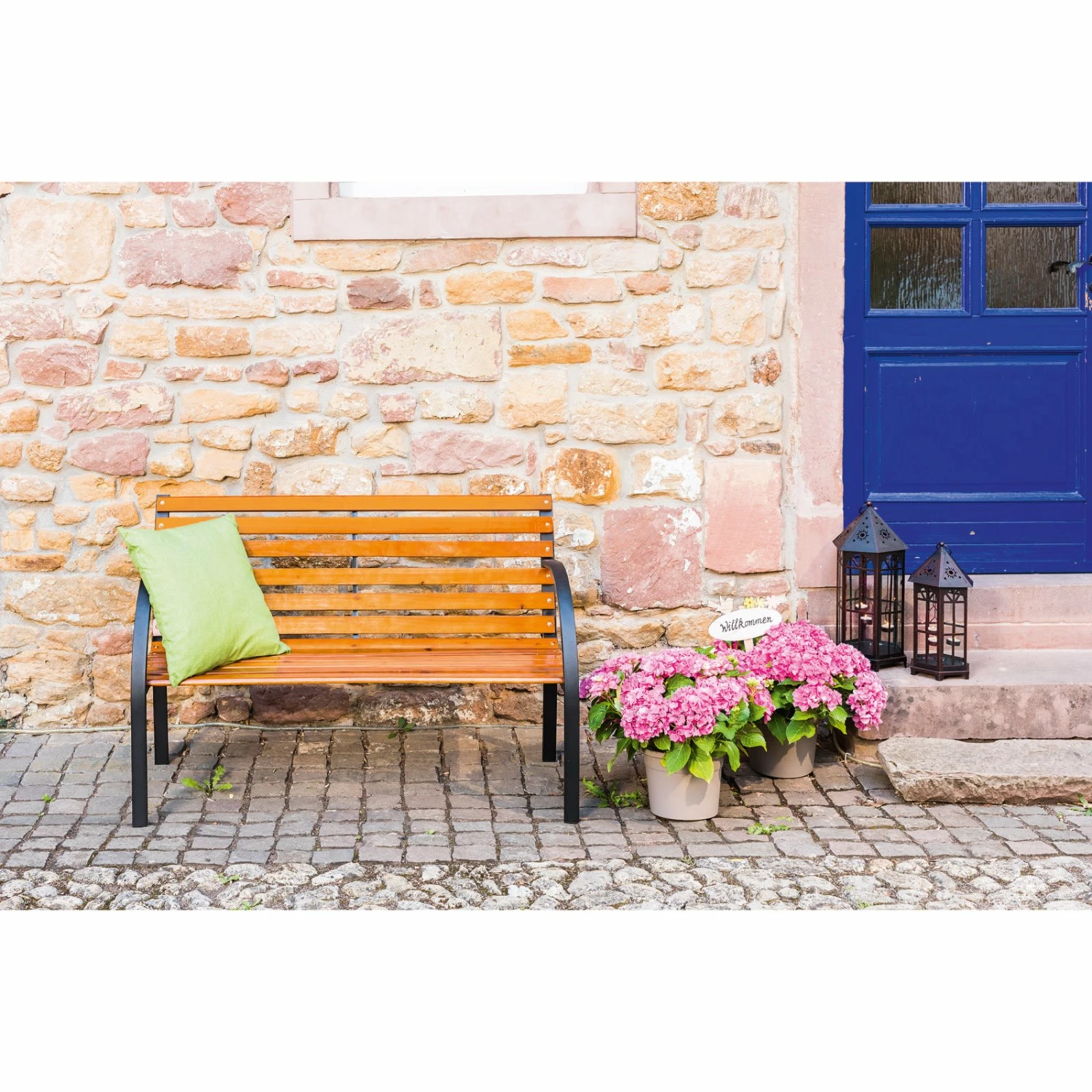 Formschöne Gartenbank mit langlebigen Hartholzlatten und einem stabilem Metallgestell. Genießen Sie die Ruhe Ihres Gartens auf dieser wunderschönen Gartenbank und lassen Sie einfach mal die Seele baumeln.