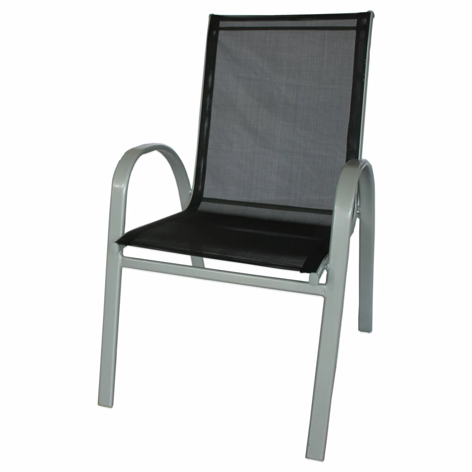 Mit diesem silber-schwarzen Gartenstuhl genießen Sie den Sommer von seiner sonnigen und praktischen Seite. Der Sessel ist stapelbar und sein dezentes, aber dennoch modernes Design passt sich vielen Garten- und Terrassenmöbeln perfekt an und lässt sich somit gut kombinieren. Das silberne Metallgestell ist pulverbeschichtet und garantiert so einen stabilen Halt und eine hohe Wetterbeständigkeit. Der schwarze Textilene-Stoffbezug bietet einen tollen Sitzkomfort und macht den Aufenthalt im Freien für Sie und Ihre Gäste zu einer bequemen Angelegenheit.