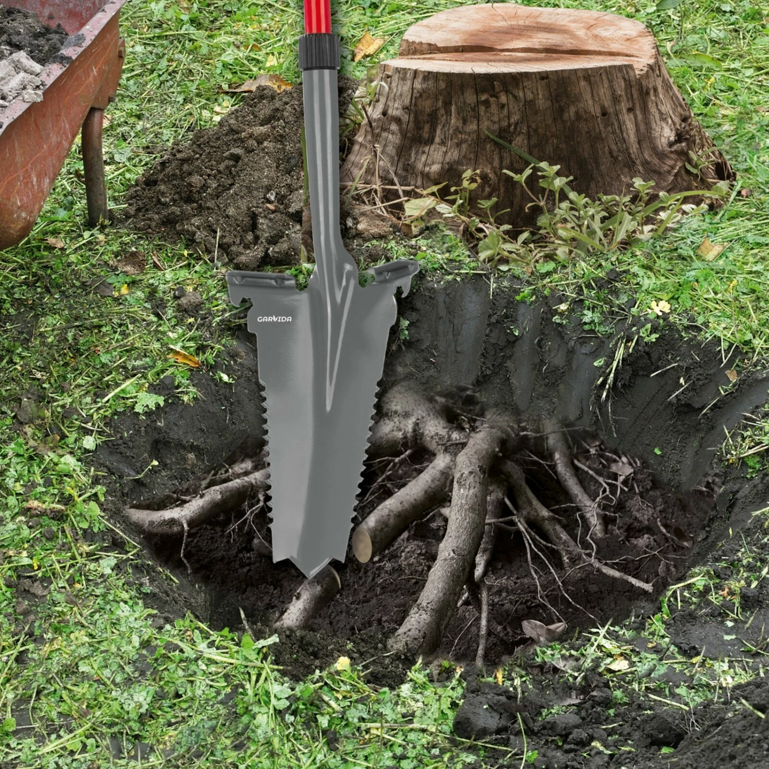 GARDIVA Spaten-/Wurzelsäge – grau-rot – 114 cm