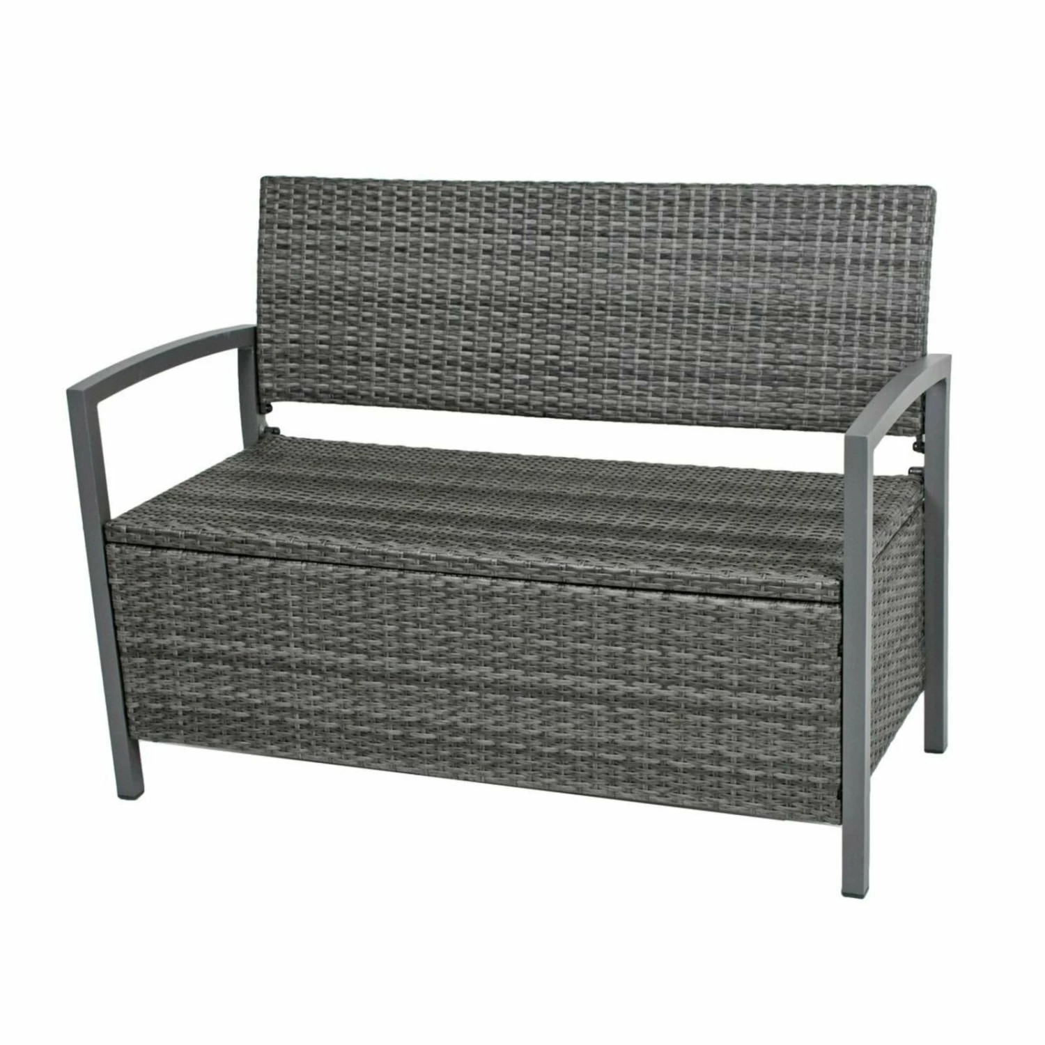 Gartenbank FERRARA – dunkegrau – Polyratten – mit Ablagefach