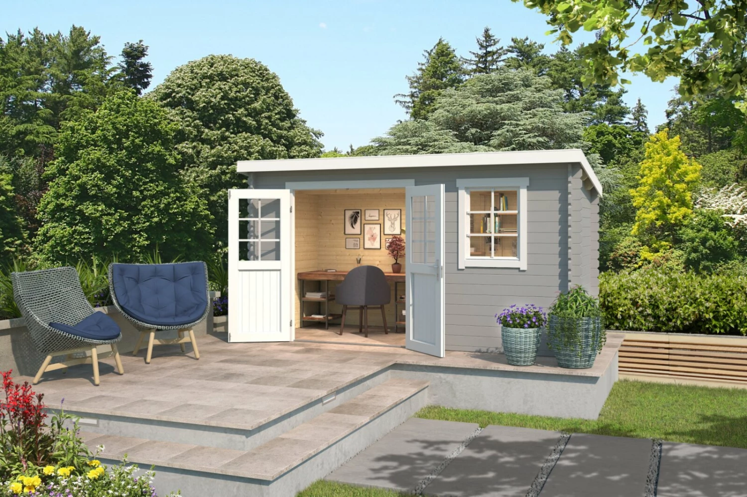 Eine Hütte im Wald wünschen sich viele, um den Kopf von den zahlreichen Eindrücken des Alltags zu trennen. Den Wald können wir Ihnen nicht liefern – dafür aber das AMIRA 175 Gartenhaus in Lichtgrau. Die Lieferung erfolgt frei Bordsteinkante als Bausatz auf einer Einwegpalette.