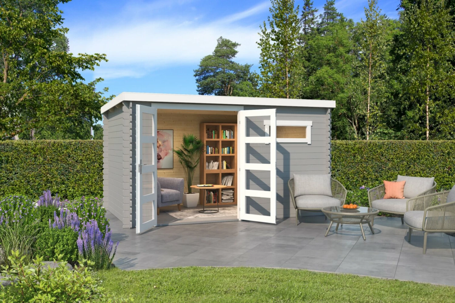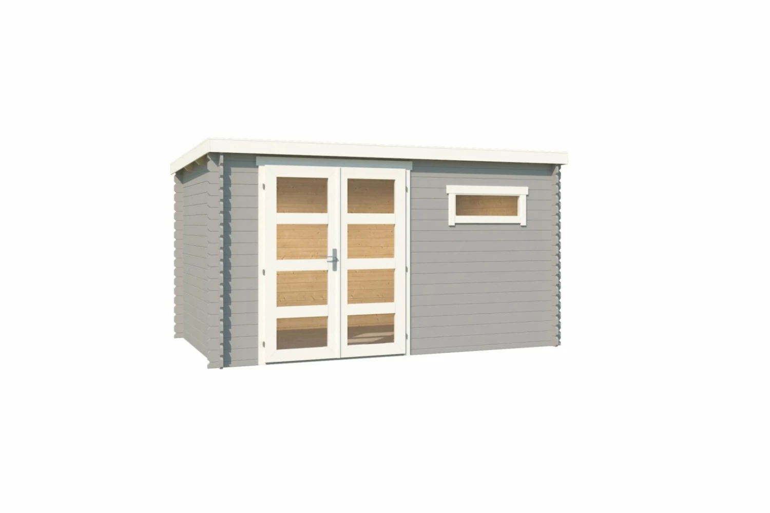 Gartenhaus AUGUSTA – lichtgrau – Fichte massiv – 380×230 cm