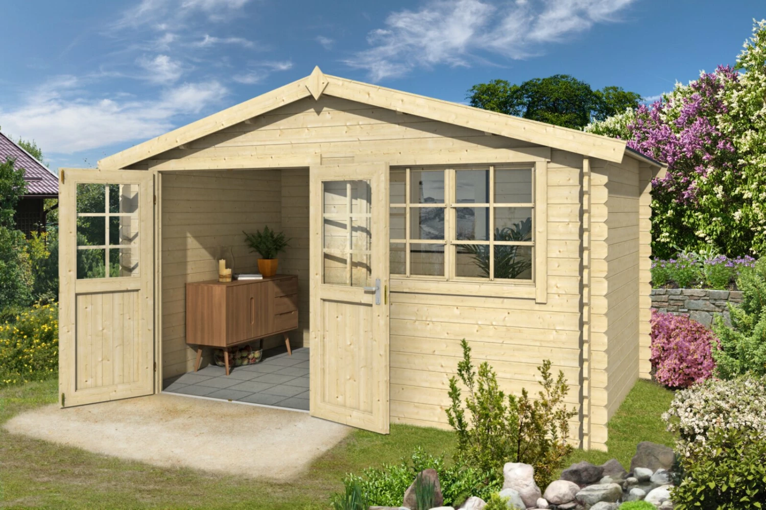 Gartenhaus AXEL 280 – Fichte massiv – naturbelassen – 380×230 cm