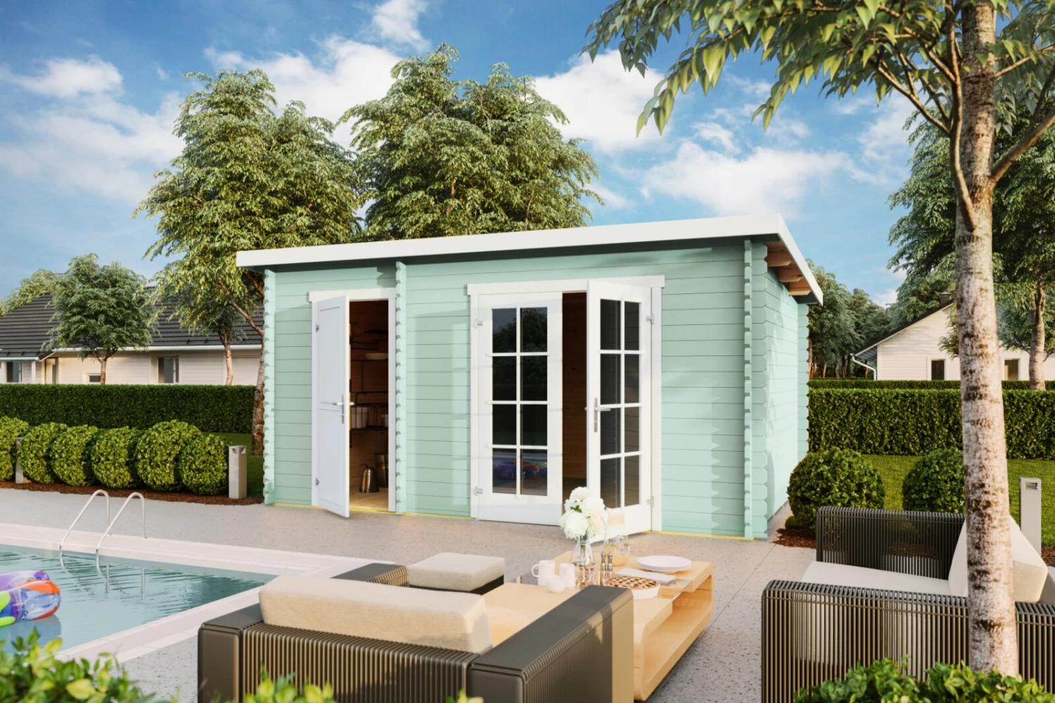 Gartenhaus BELMONT 2 – gletschergrün – Fichte massiv – 425×280 cm