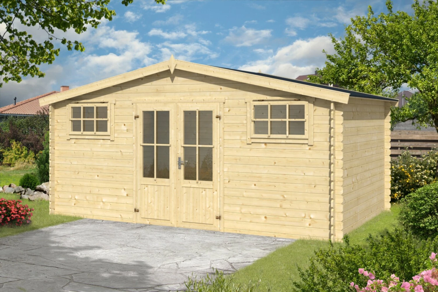 Gartenhaus BOSTON – Fichte massiv – naturbelassen – 408×292 cm
