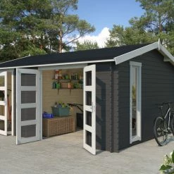 Gartenhaus CARROZ 2 – Fichte massiv – carbongrau – 456×360 cm