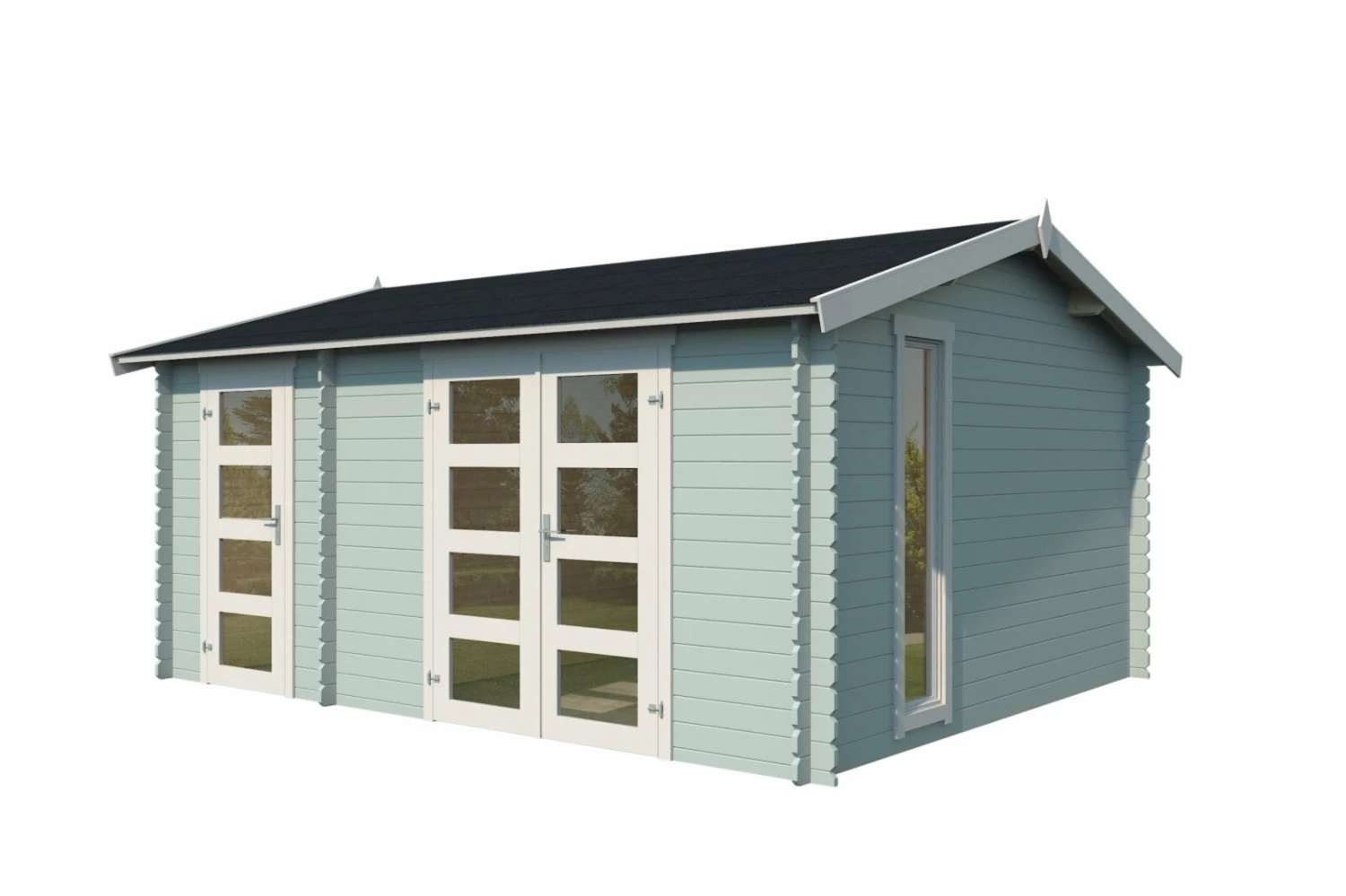 Gartenhaus CARROZ 2 – Fichte massiv – gletschergrün – 456×360 cm