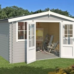 Gartenhaus DALLAS – lichtgrau – Fichte massiv – 376×292 cm