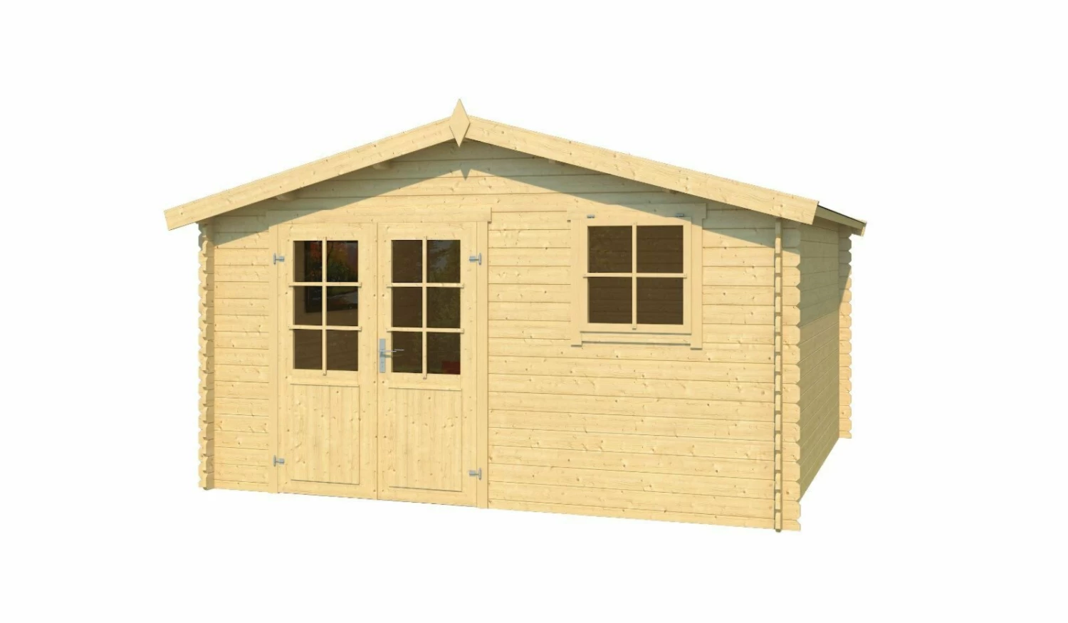 Gartenhaus EBRO C – Fichte massiv – naturbelassen – 390×390 cm