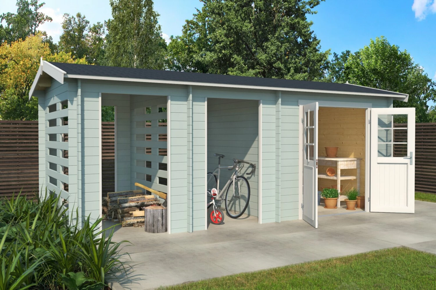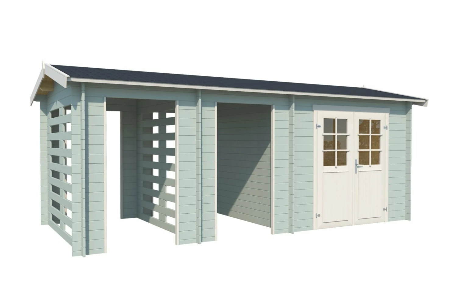 Gartenhaus HOKKAIDO 2 – gletschergrün – Fichte massiv – 550×250 cm