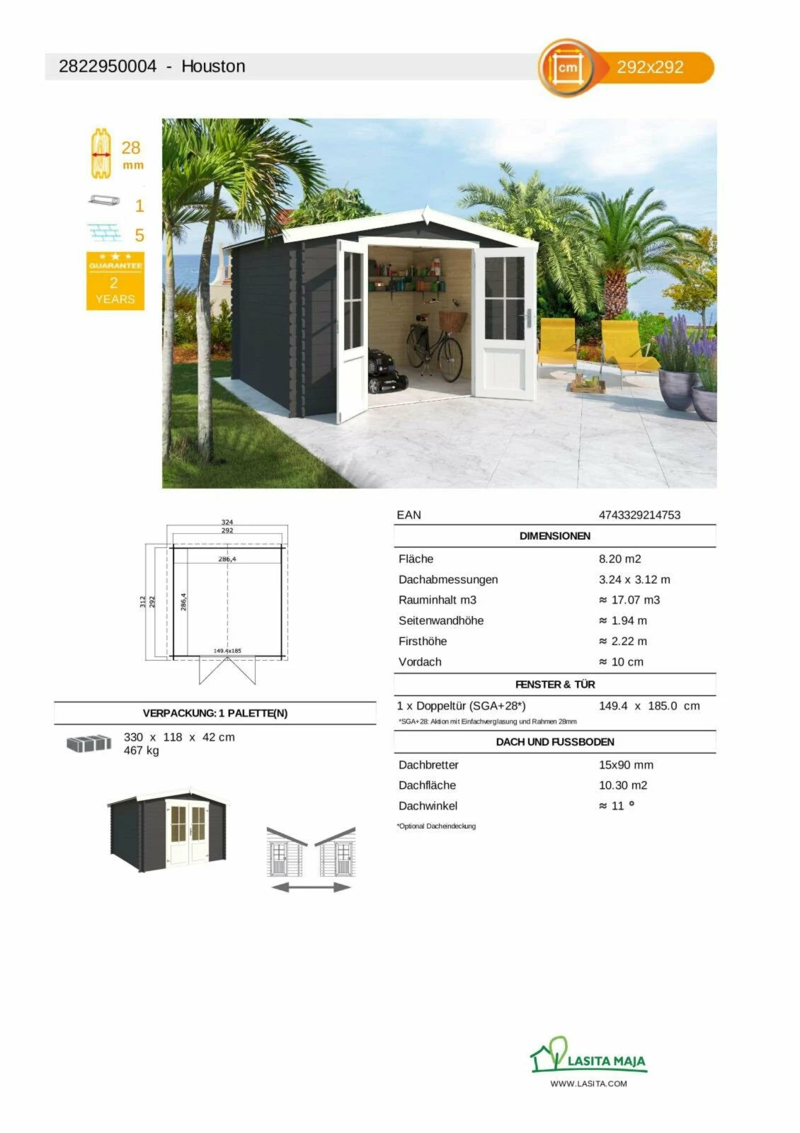 Das quadratische Gartenhaus HOUSTON dient zum Verweilen oder als Lagermöglichkeit für Ihre Gartengeräte. Vielfältige Einsatzmöglichkeiten sind also in diesem hochwertigen Gartenhaus aus 100% nordischer Fichte garantiert. Eine große Doppeltür sowie das Satteldach runden das stimmige Design ab.
