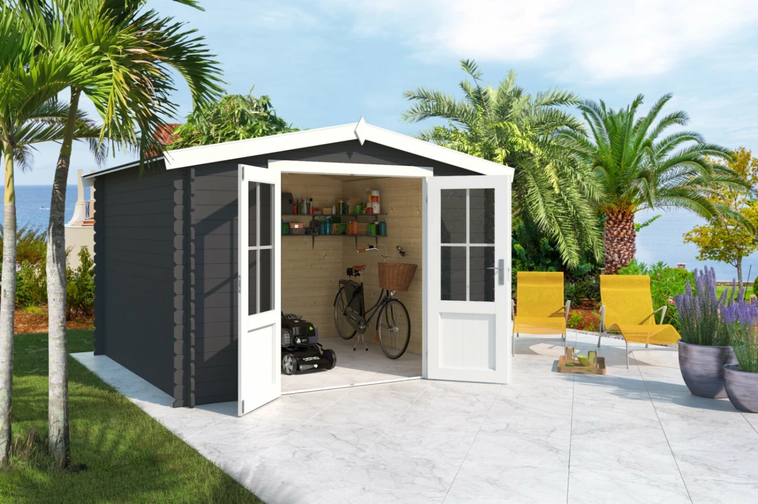 Gartenhaus HOUSTON – carbongrau – Fichte massiv – 292×292 cm
