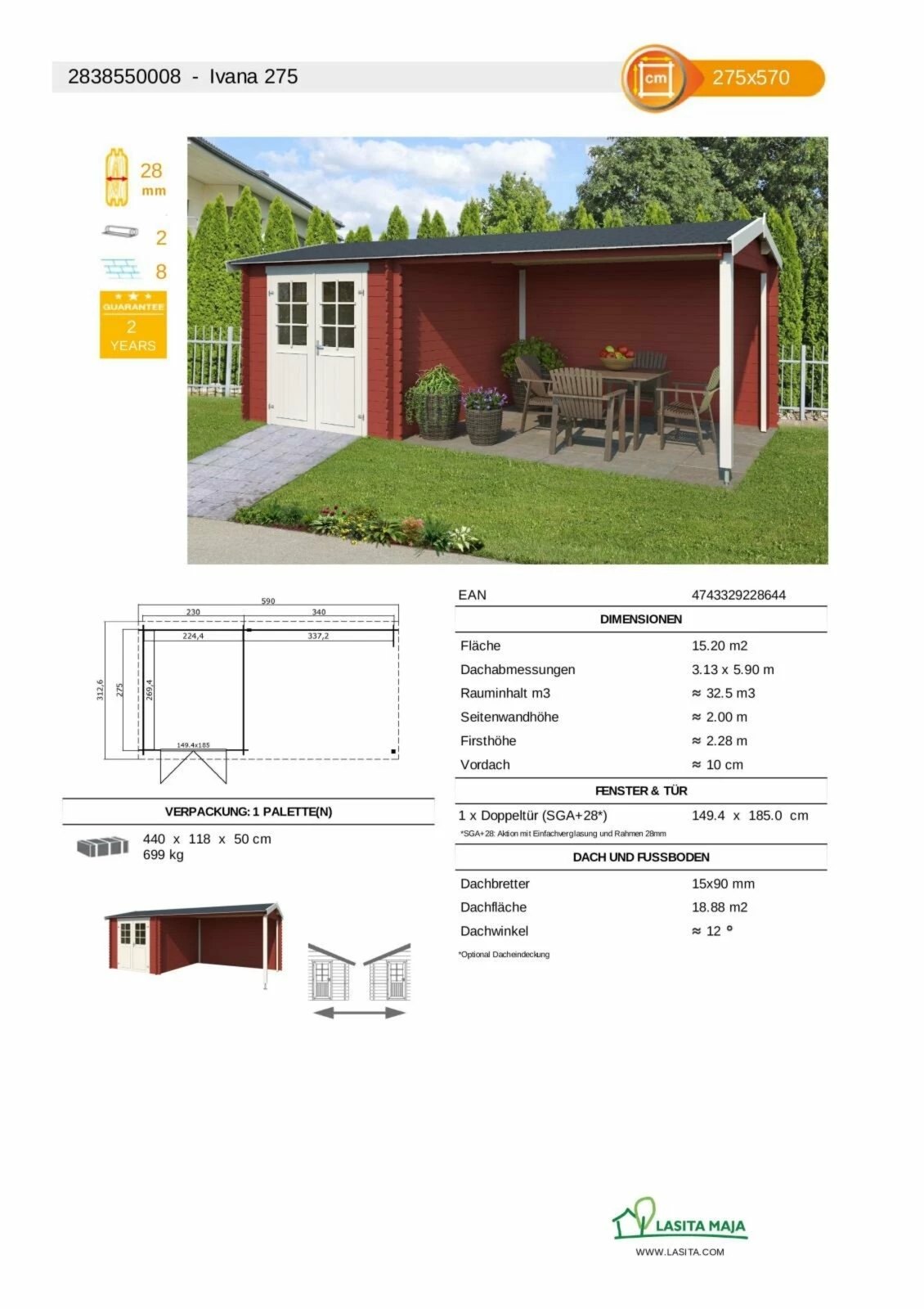 Das Gartenhaus IVANA kombiniert eine großzüzige Sitzmöglichkeit mit ausreichendem Lagerraum. Der Geräteraum ist durch die große Doppeltür mit Echtglas zu erreichen. Der Sitzbereich ist mit überdacht, und bietet somit eine wetterunabhängige Möglichkeit zum entspannen.