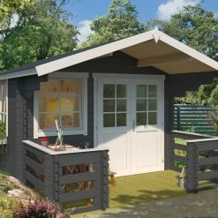 Gartenhaus LOLA 2 – carbongrau – mit Terrasse und Geländer – 300×300 cm