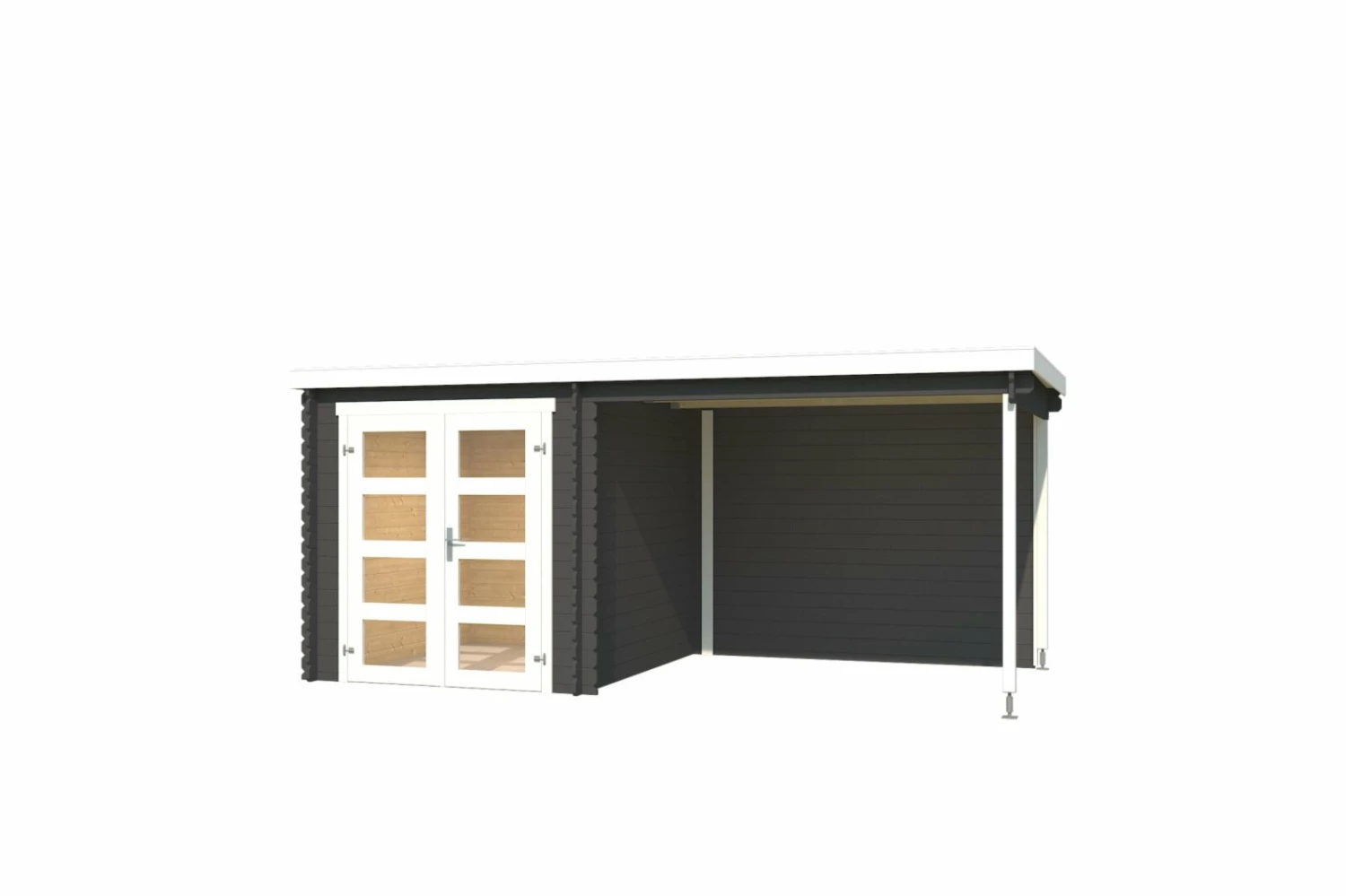 Gartenhaus LONG BEACH – carbongrau – Fichte massiv – mit Anbau – 472×230 cm