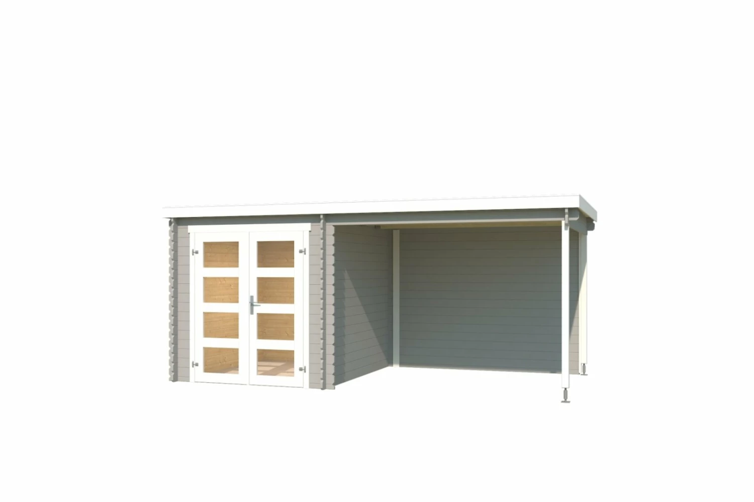 Gartenhaus LONG BEACH – lichtgrau – Fichte massiv – mit Anbau – 472×230 cm
