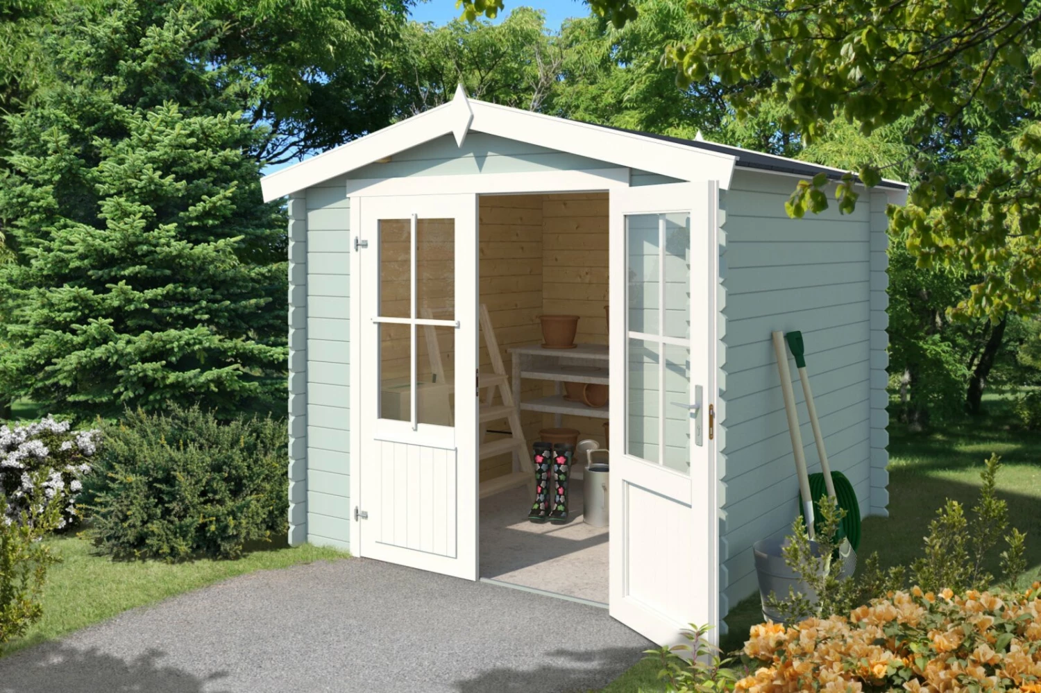 Gartenhaus LOS ANGELES – gletschergrün – Fichte massiv – 230×180 cm