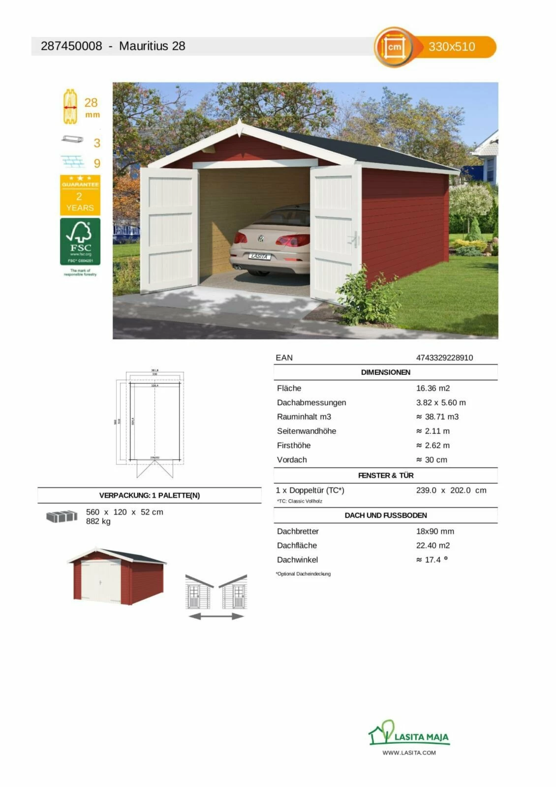 Das Gartenhaus MAURITIUS 28 lässt sich flexibel in Ihrem Garten nutzen. Durch das große Doppeltor ist dieses Gartenhaus problemlos als Garage für Ihren PKW oder Ihr Motorrad zu benutzen. Auch Ihre Gartenutensilien finden selbstverständlich hier Ihren Platz.