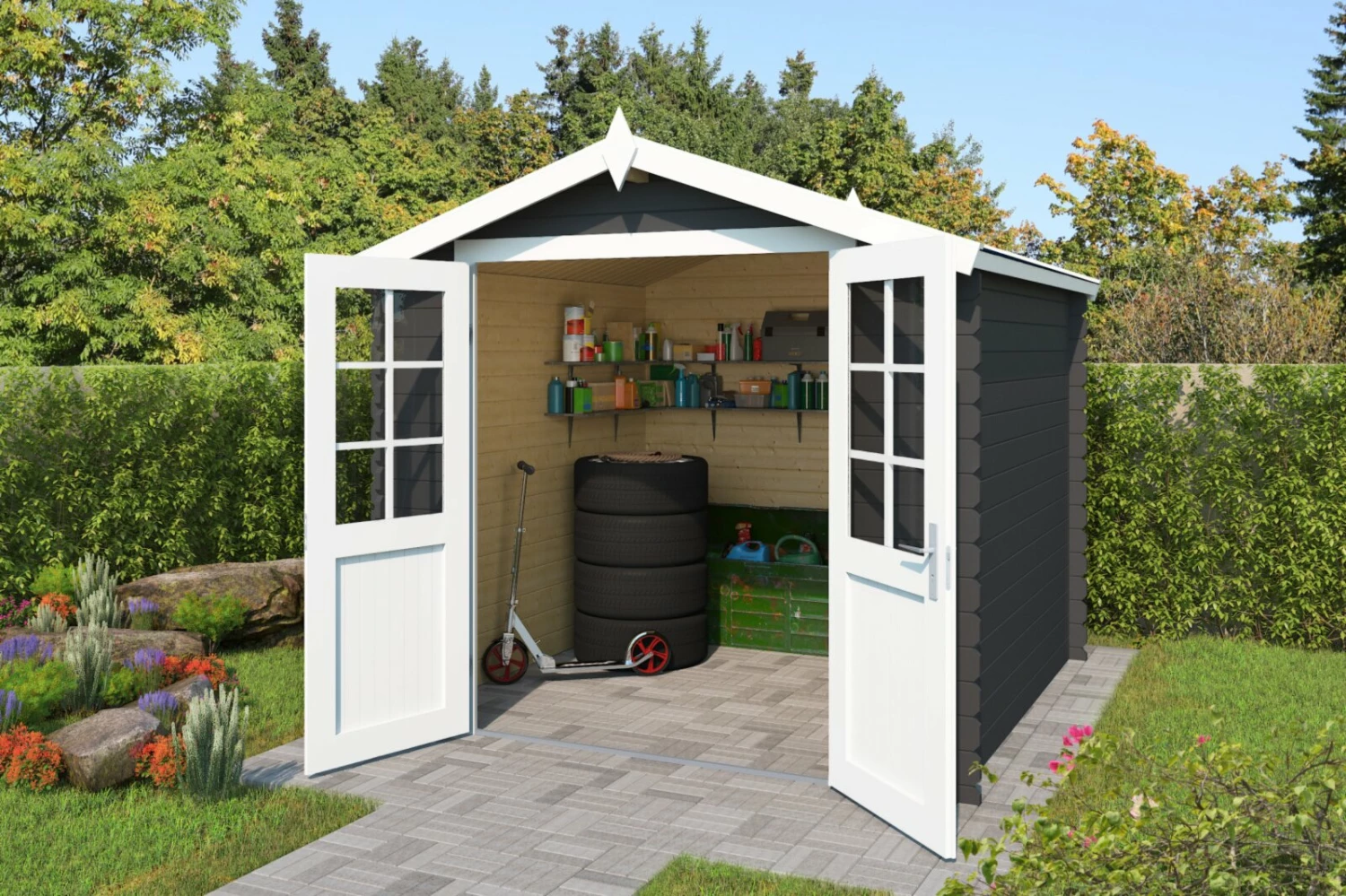 Gartenhaus MORAVA A – carbongrau – Fichte massiv – 230×230 cm