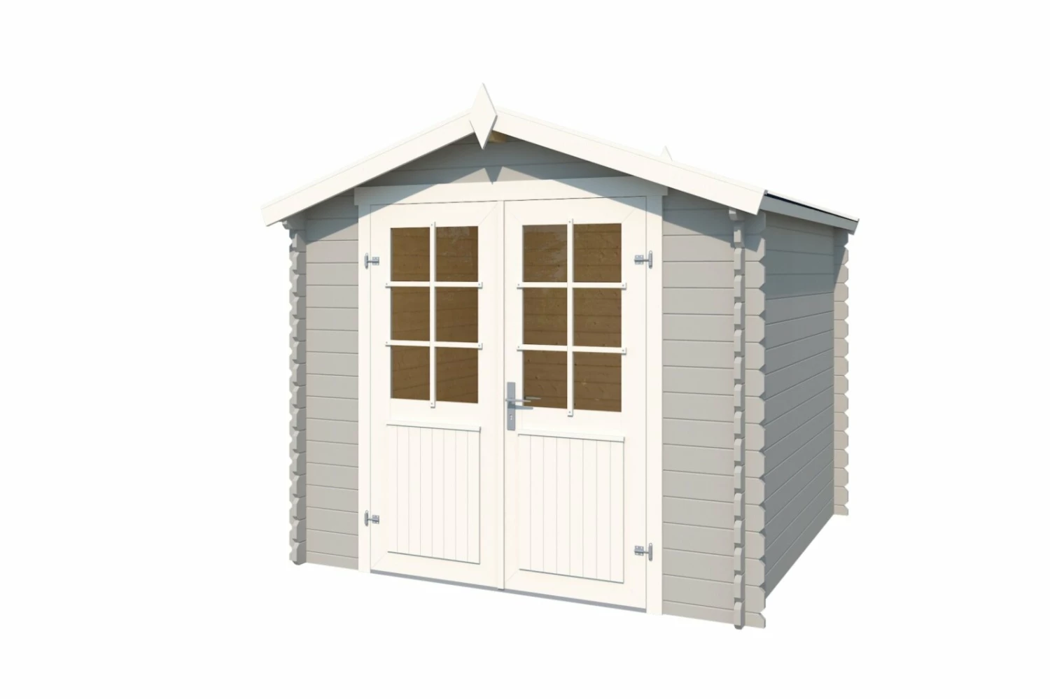 Gartenhaus MORAVA A – lichtgrau – Fichte massiv – 230×230 cm