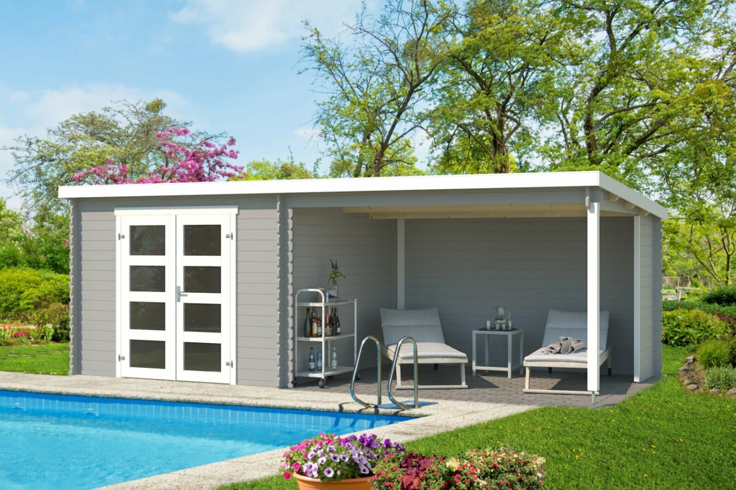 Gartenhaus NOVIA PLUS – lichtgrau – Fichte massiv – 600×275 cm