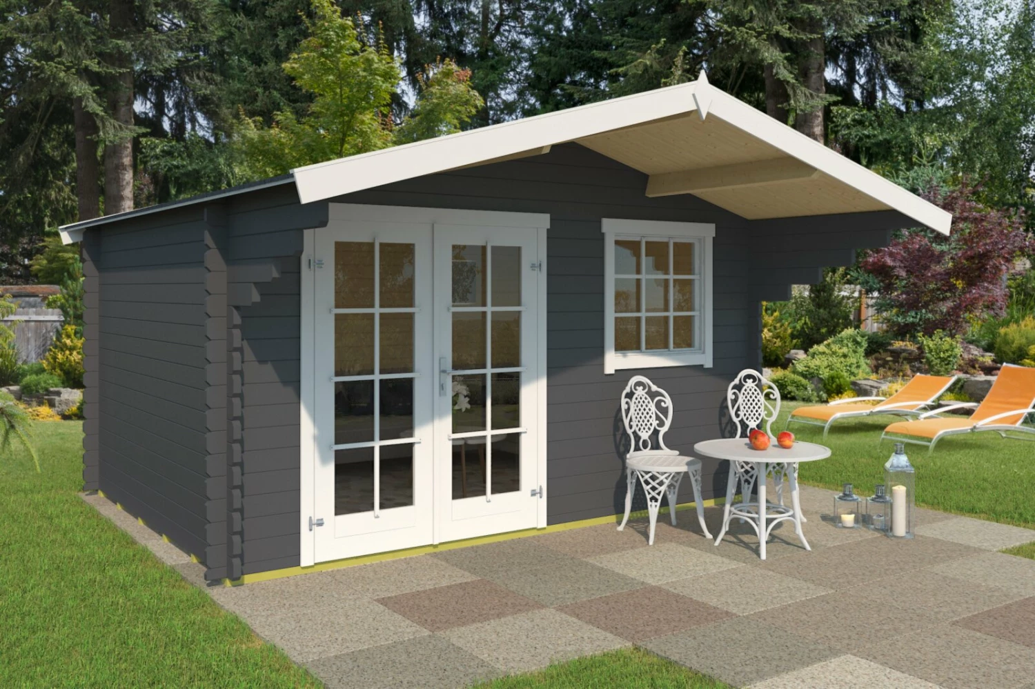 Gartenhaus ORLANDO 34 – carbongrau – Fichte massiv – 380×280 cm